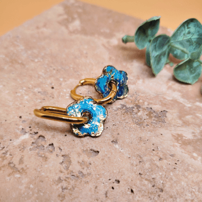 Créoles « Nina » fleur bleu – Création artisanale en peinture recyclée